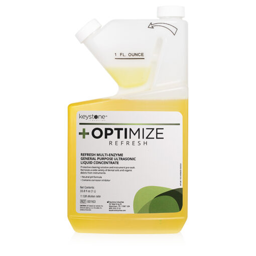 Refresh Enzymatic Cleaner is a versatile protective cleaning solution and instrument pre‑soak, suitable for use with or without an ultrasonic unit. Each bottle features a built‑in 1 fl oz metering chamber for easy measurement. Just 1 fl oz (29.5 g) of concentrate prepares 1 gallon (3.78 L) of ready‑to‑use solution.