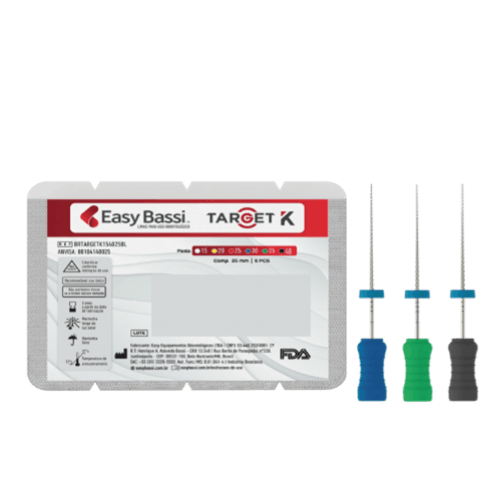 The Target K file is made from high-quality stainless steel, ensuring greater durability. Used for the chemical-mechanical preparation of root canals, it features a square cross-section, providing excellent flexibility, strength, and cutting efficiency.