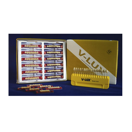 Three-layer anterior and posterior teeth. Available in 21 upper and 7 lower anterior and 12 posterior moulds, in 16 equivalent Vita shades. Supplied in sets of 6 anterior and 8 posterior teeth. Highly recommended for use in the independent/private sector.